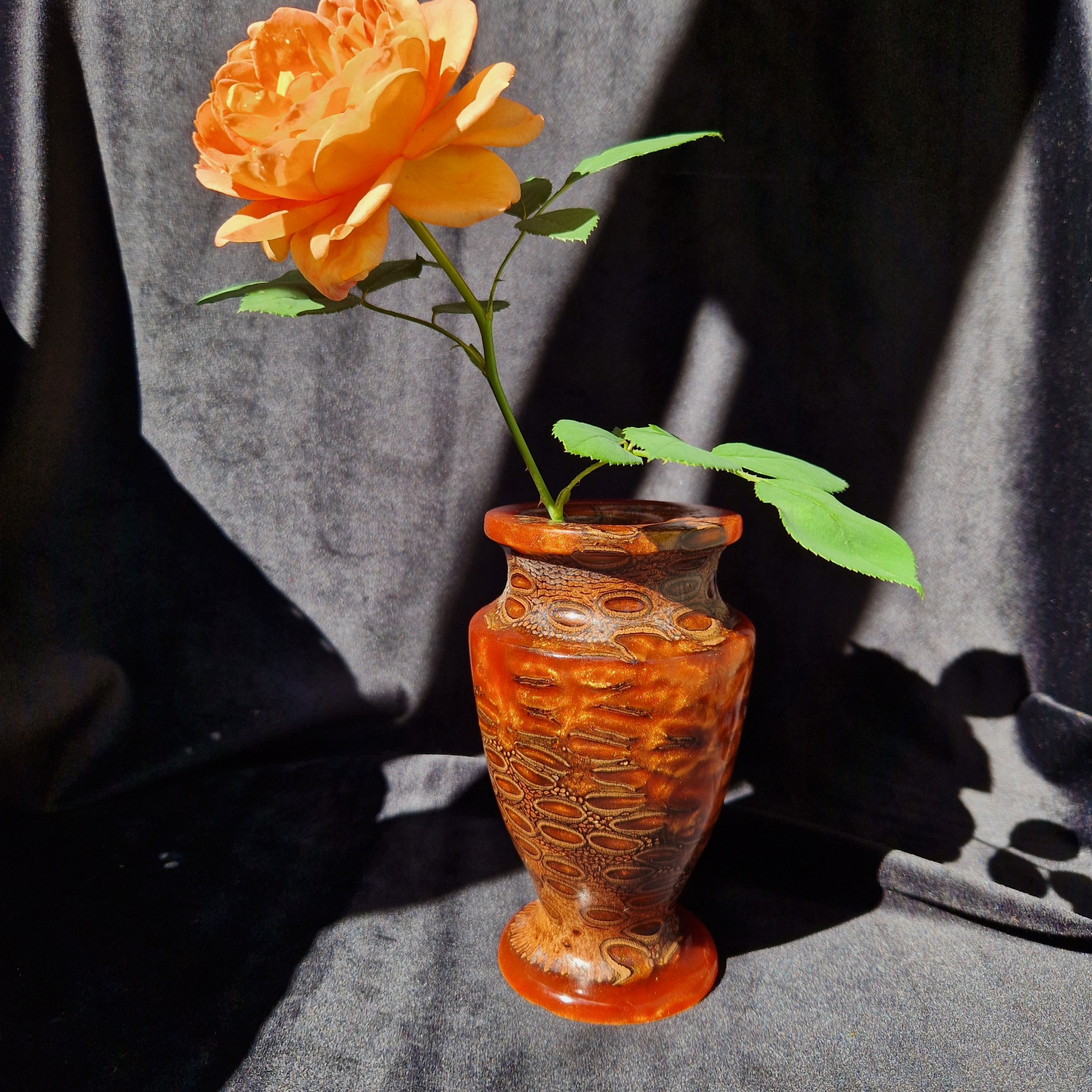 Sealed in resin and fully waterproof, this vase works beautifully with short-stemmed fresh flowers, dried arrangements, or as a striking standalone display. Bold, distinctive, and unforgettable, it makes a powerful statement in any space.