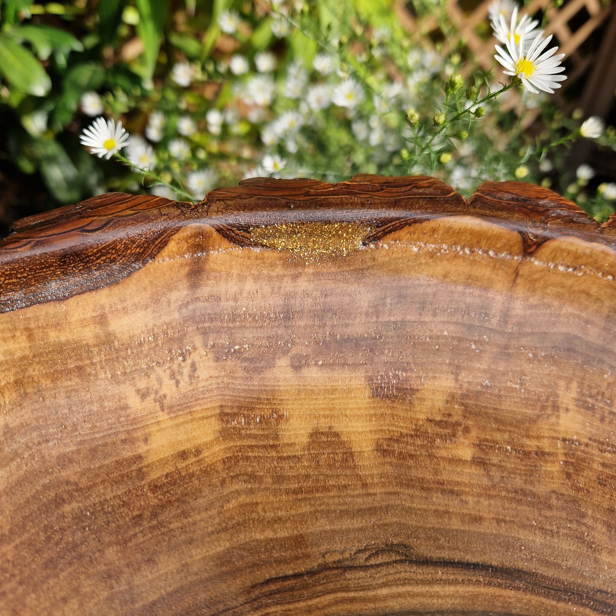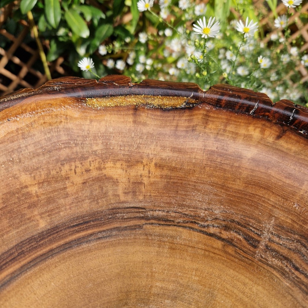 Design: End-grain, live-edge, kintsugi finish