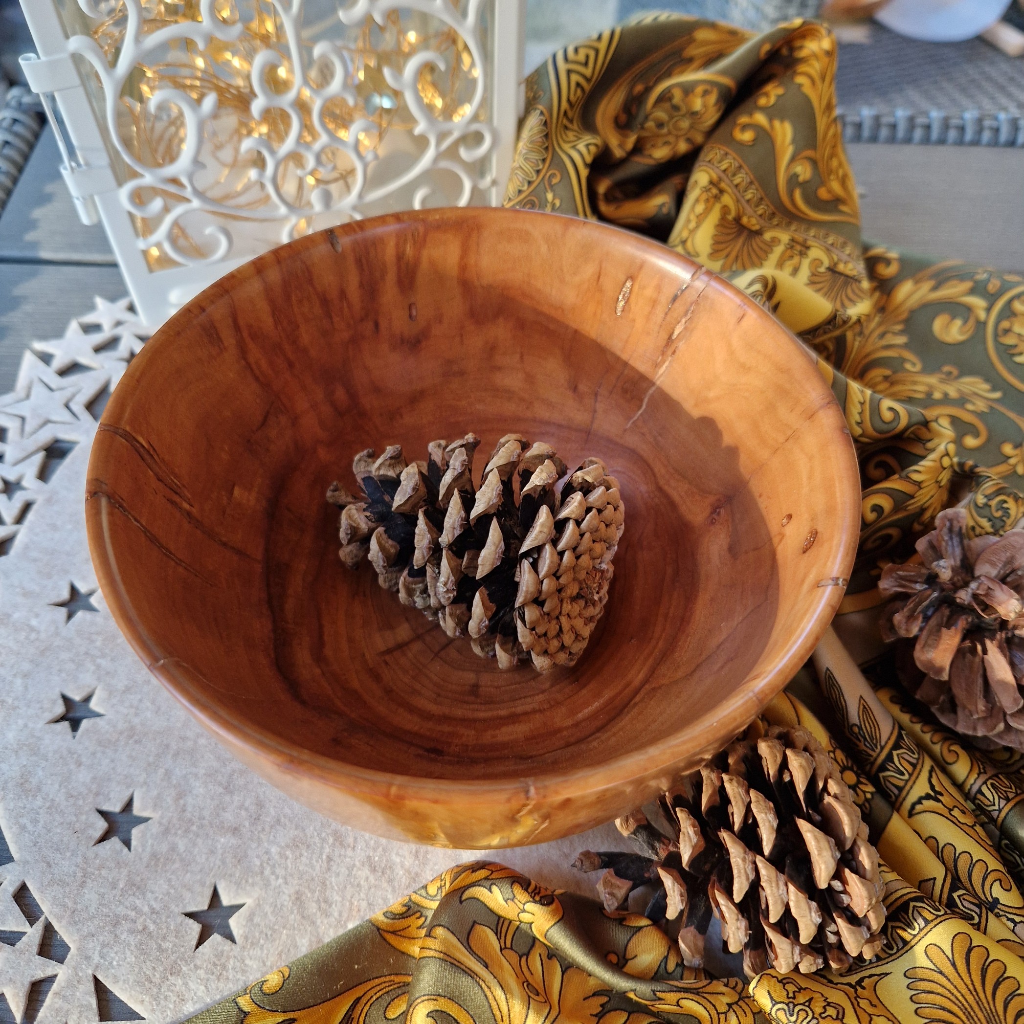 Lśniąca i gładka w dotyku, wykończona olejem oraz woskiem dopuszczonymi do kontaktu z żywnością, misa nadaje się do codziennego użytku lub ekspozycji. Jej głęboka forma sprawdza się idealnie do słodyczy, przekąsek, ciastek, potpourri lub jako dekoracyjny element stołu, wprowadzając ciepło i przytulną atmosferę do nowoczesnych i inspirowanych naturą wnętrz.